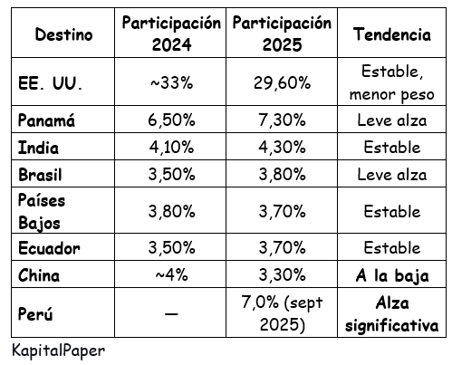 EE. UU. Sigue siendo el principal socio, con exportaciones no minero-energéticas creciendo 15% en 2025 (60% del total hacia ese mercado).