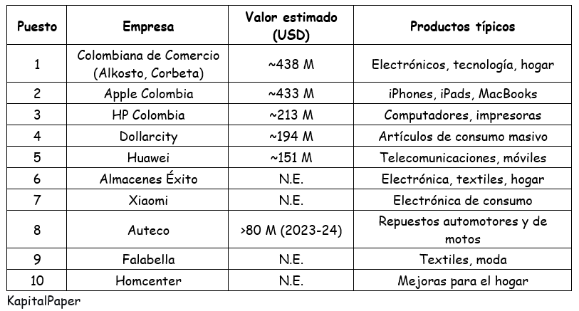 En el primer trimestre de 2026 se suman Samsung, LG, TCL, Hisense, Sodimac y Pricesmart como actores relevantes, especialmente en televisores y electrodomésticos (impulsados por el Mundial de Fútbol).