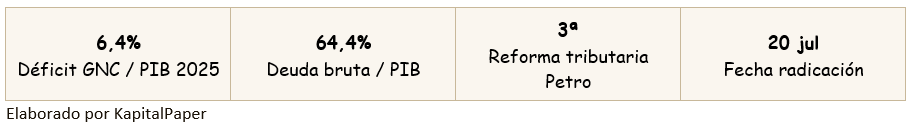 El EMBI de Colombia es el más alto de la región, el CDS a cinco años ronda los 225 puntos básicos y la caja de la Tesorería apenas cubre cinco días de pagos. Una nueva reforma tributaria en ese contexto puede interpretarse como un ajuste responsable o como evidencia de que el gobierno no tiene control sobre su gasto. El mercado, por ahora, opta por la segunda lectura.